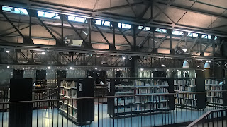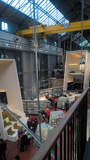 Et là j’avoue que je suis particulièrement fière de ce que la ville a réaliser parce que l’espace est tout simplement magnifique. Ils ont su allier l’ancien et le moderne, conservant ça et là les anciennes machines qui servaient à construire les bateaux, exploiter au mieux l’immense surface de ces ateliers et nous proposer une médiathèque tout simplement magnifique.