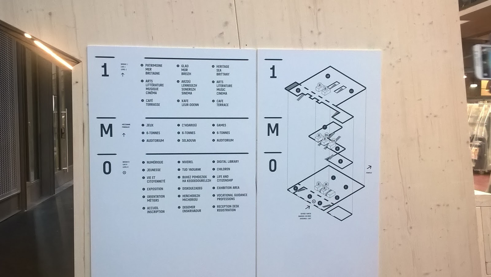 La médiathèque sera organisée en 5 départements thématiques. Dans la grande nef, avec l’accueil, on trouvera le département « vie et citoyenneté » ainsi que des espaces d’animation. Le bâtiment s’organise ensuite en trois niveaux : jeunesse et numérique au rez-de-chaussée, jeux traditionnels et jeux vidéo en mezzanine, arts et littératures ainsi que patrimoine, Bretagne et mer à l’étage.