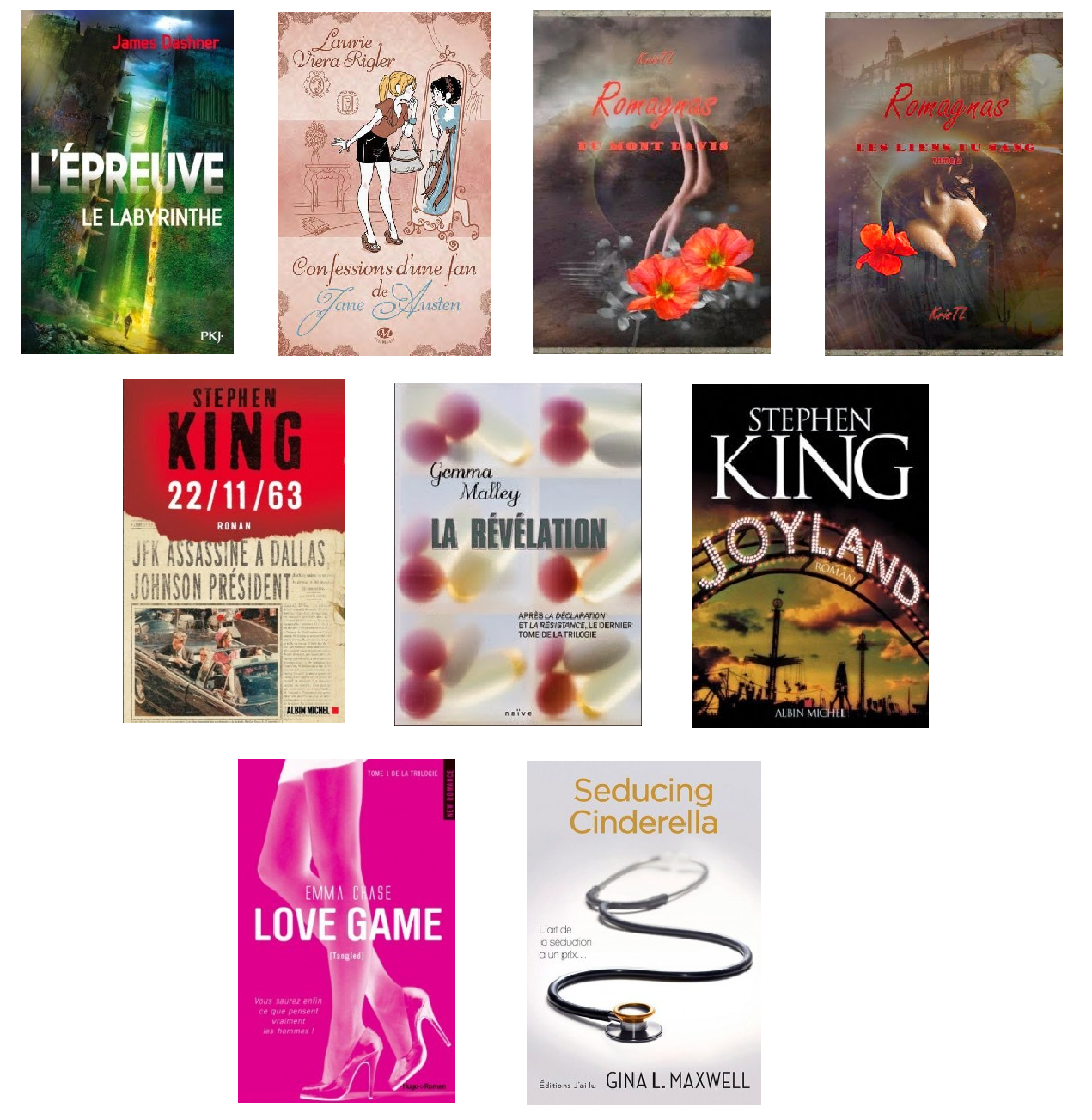 C’était vraiment trop difficile de déterminer un coup de coeur parmi les neufs livres que j’ai lu ce mois ci parce que je ne saurai départager entre 22/11/63; Love Game, Seducing Cinderella ou les deux tomes des Romagnas. J’ai vraiment prit beaucoup de plaisir à lire ces livres et ils m’ont beaucoup touchée chacun dans leur genre.