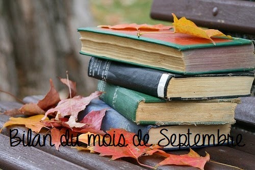 1er octobre donc voici venue l’heure du bilan du mois… Septembre, c’était le mois de la rentrée des classes, mais aussi un grand week end avec BEAUCOUP de temps dans les transports, donc du temps pour lire. Ce mois ci ce sont donc une fois de plus 10 livres que j’ai chroniqués et un 11eme dont je n’ai lu que quelques pages.. mais je vais le mettre quand même dans mon bilan,.. après tout, tous les livres dont je vous parle ici y ont leur place.